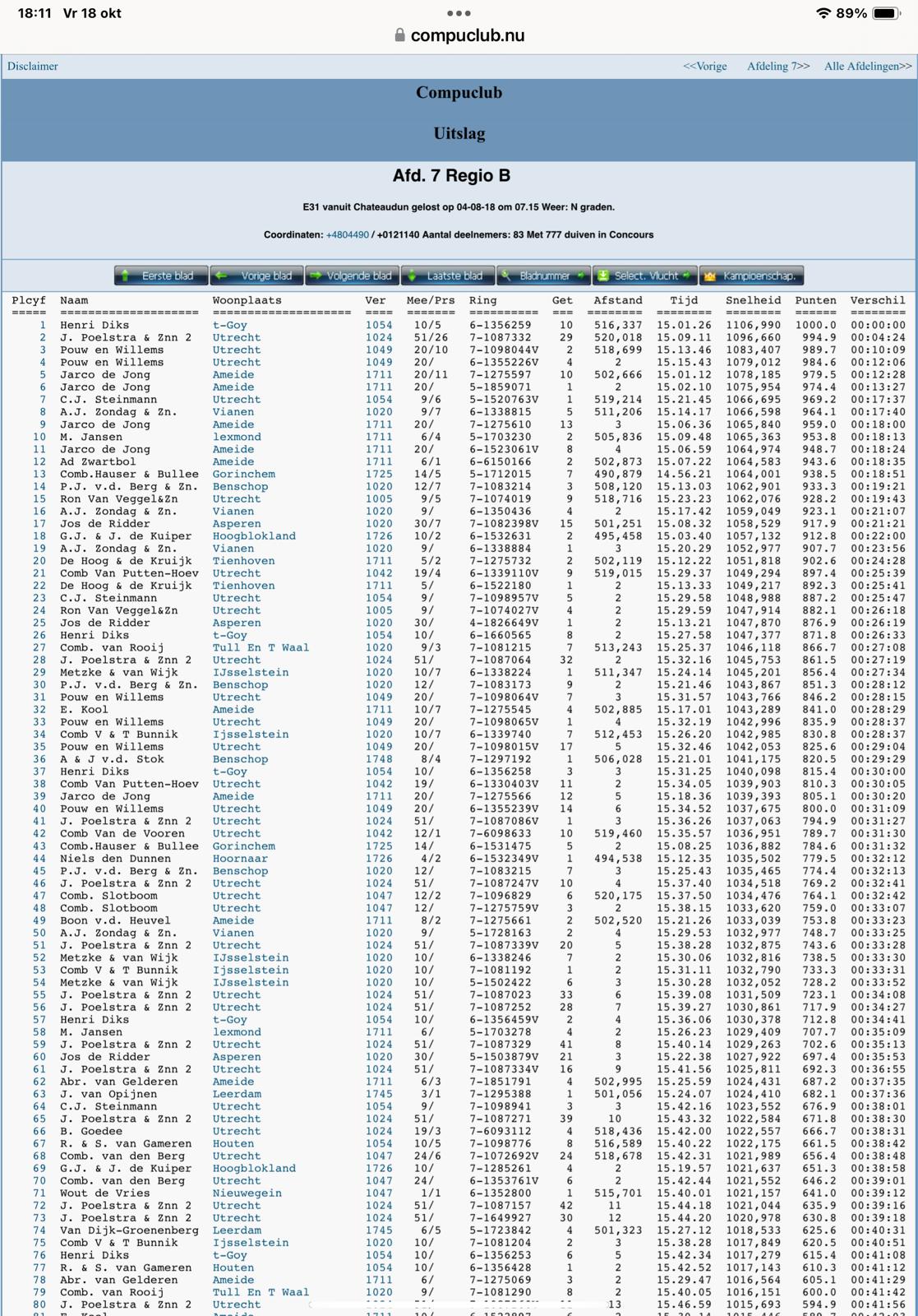 De overige fondduiven van J. Poelstra & Zonen